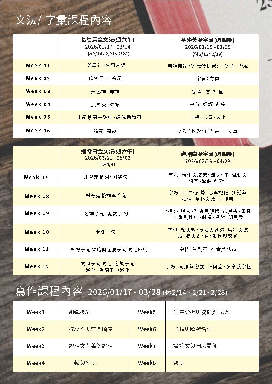 四科大滿貫最新課表